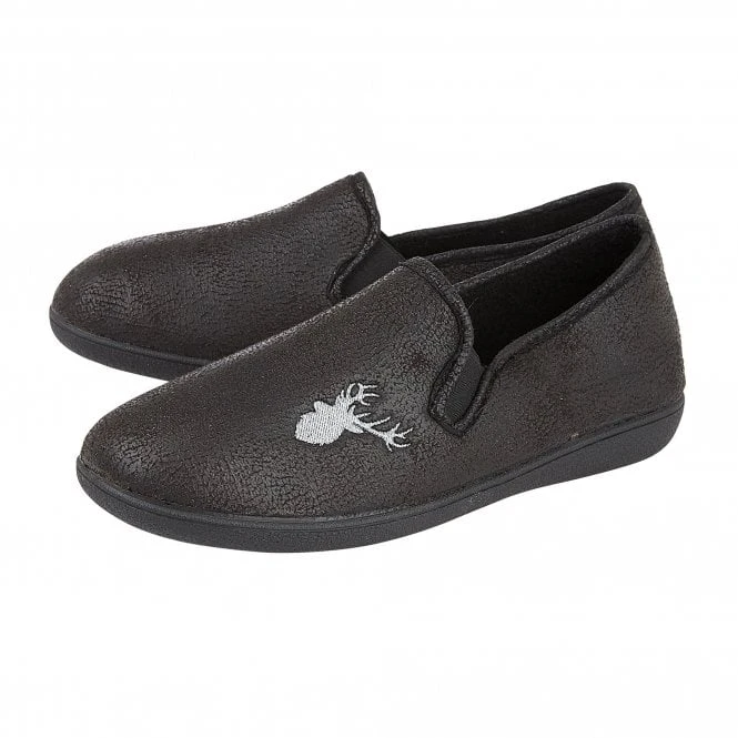 Focusing on comfort and wearability is the Lotus men’s Claude slipper. This traditional, full shoe, black slipper is crafted from faux leather and features an embroidered stag’s head on the upper. Practical features include discreet elasticated side panels helps to get them on/off with ease and a rubber outsole for enhanced durability. Comfort is also addressed by the incorporation of memory foam in-socks.