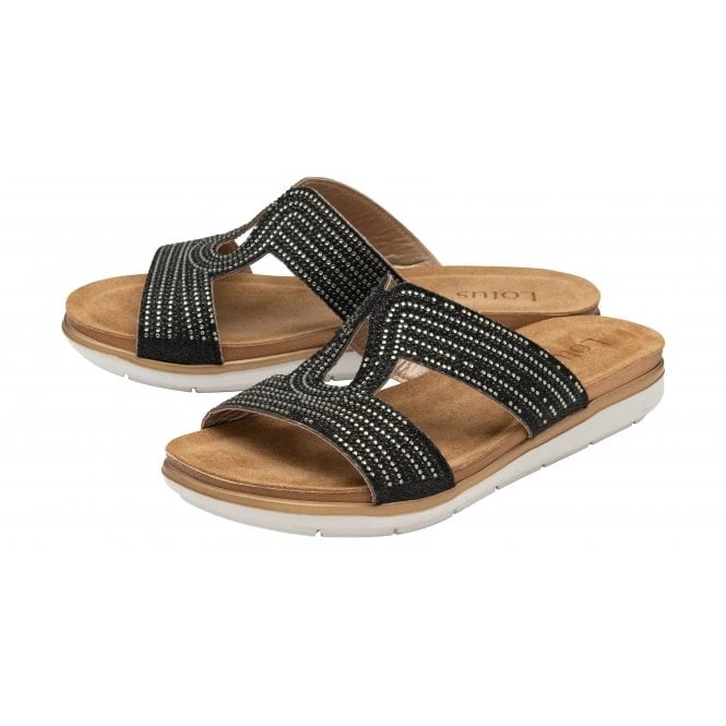 Add some sparkle to your day and evening looks this summer with the Lotus Nadya open toe sandal. This almost flat, slip-on, black mule boasts a flurry of diamantes on the upper and it encompasses a leather footbed, making it the perfect addition to any capsule holiday wardrobe. Nadya is not only glamorous, but also a pure delight to wear too.
