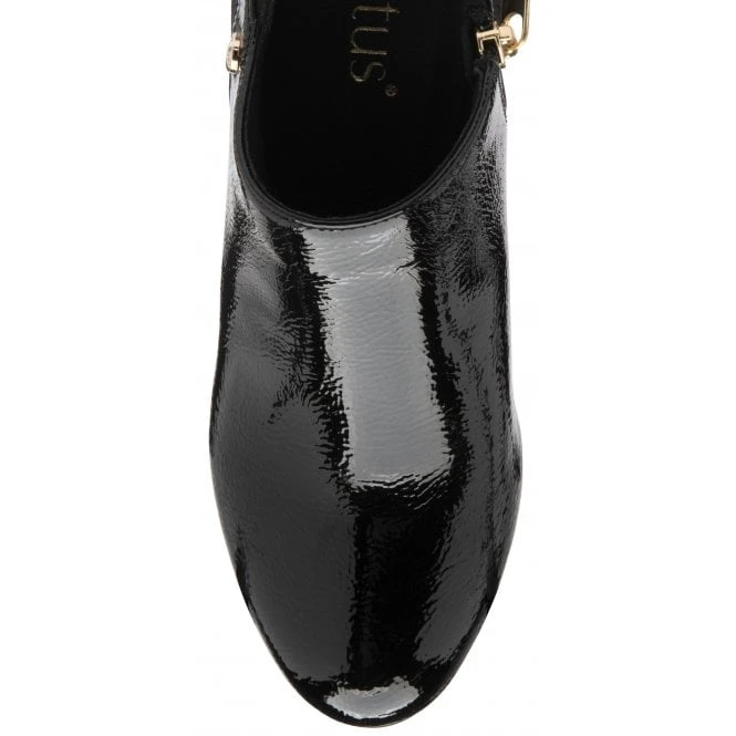 A stylish offering that is exceptionally wearable is the Lotus Ramona shoe-boot. This Lotus women’s black shoe-boot rests on a 8.5cm heel and features a glossy patent upper, plus a textile covered heel counter that is accentuated by a decorative buckle strap. This Lotus ladies’ shoe-boot that is crafted with an almond pointed toe will add the perfect finish to tailored looks.