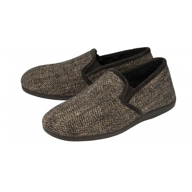 A traditional offering from Lotus that won’t disappoint is the men’s full shoe slipper Stanley. Nestled on a rubber outsole for enhanced durability, this men’s classic brown slipper also boasts a tweed effect upper, plus it features elasticated side panels to aid with putting them on/off with ease and memory foam in-socks that deliver uncompromising comfort.