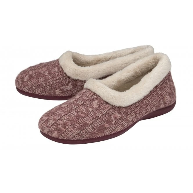 A practical and stylish footwear solution for around-the-home is the Lotus Dolores full shoe slipper. Enhancing the cable knitted upper is a sumptuous faux fur collar. This is teamed with an incredibly soft lining and a memory foam in-sock that delivers exceptional comfort to ensure that this women’s purple slipper is a delight to wear. The Dolores slipper also features a rubber outsole for enhanced durability.