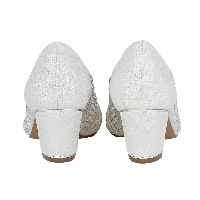 Immy is the gorgeous sister style to the ever popular Attica shoe and we’re positive that this new addition to the Lotus collection will certainly be loved as much. A flurry of sparkling diamantes accentuate the scalloped edge and the stunning laser cut outs that expose the semi-sheer mesh lining. Set on a 5.5cm block heel that encompasses a contemporary mirrored plate, makes this Lotus ice white open toe shoe a polished and highly refined style. As with many of the Lotus ladies’ occasion shoes, there’s a fabulous handbag to match Immy. Check out Nara to complete your glamorous ensembles.