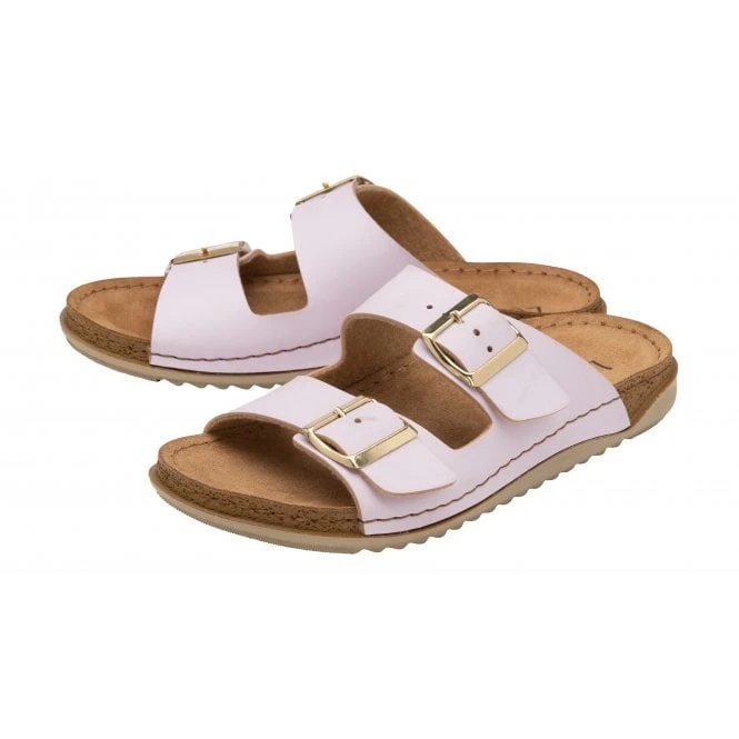 Downtime dressing calls for the Lotus Cortona mule. Double straps finished with an adjustable buckle fastening make up the upper of this almost flat, slip-on, lilac mule. This women’s summer essential sandal also features a leather insock for enhanced comfort.