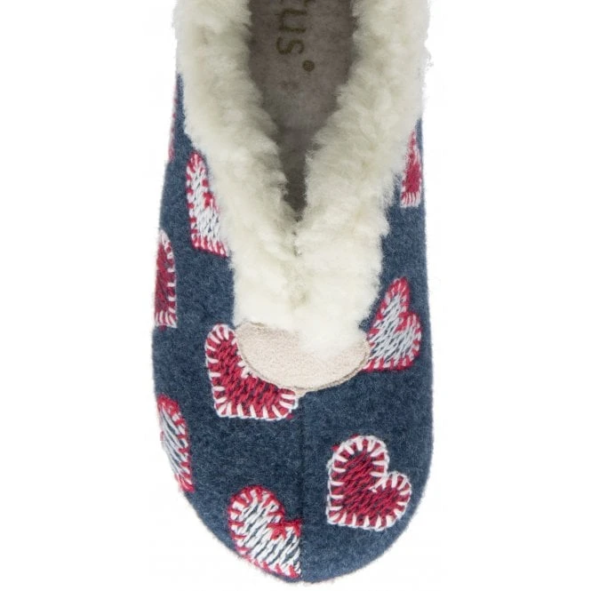 Cute heart detailing that is further accentuated by decorative stitching is creatively applied to the soft textile upper of the Lotus ladies’ Bernie slipper. This navy full shoe slipper is further accentuated by a sumptuous faux fur collar and lining to provide additional warmth in the colder months. This Lotus women’s slipper also encompasses a cushioned insock and a flexible hard outsole, which makes Bernie not only exceptionally comfortable but extremely practical too.