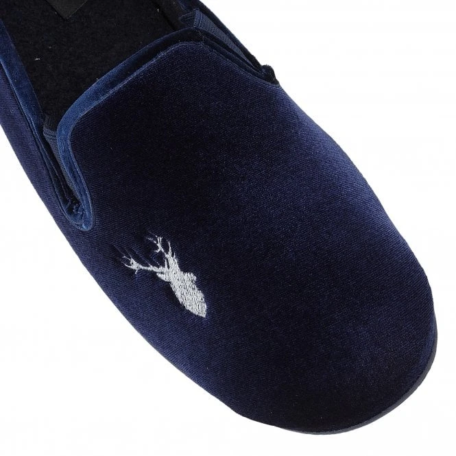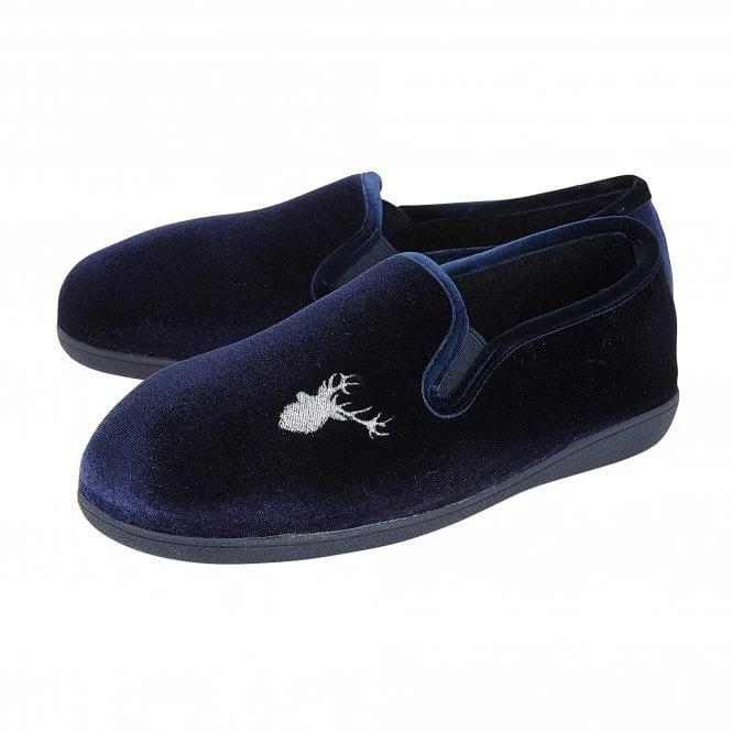 The Lotus Clarence navy slipper is traditional in its styling and will appeal to refined gentlemen. Constructed with a plush velour upper that is enhanced by an embroidered stag’s head and featuring discreet elasticated side panels to help to get them on/off with ease, a practical rubber outsole and memory foam in-socks, this full shoe slipper is exceptionally comfortable and highly wearable.