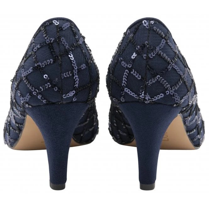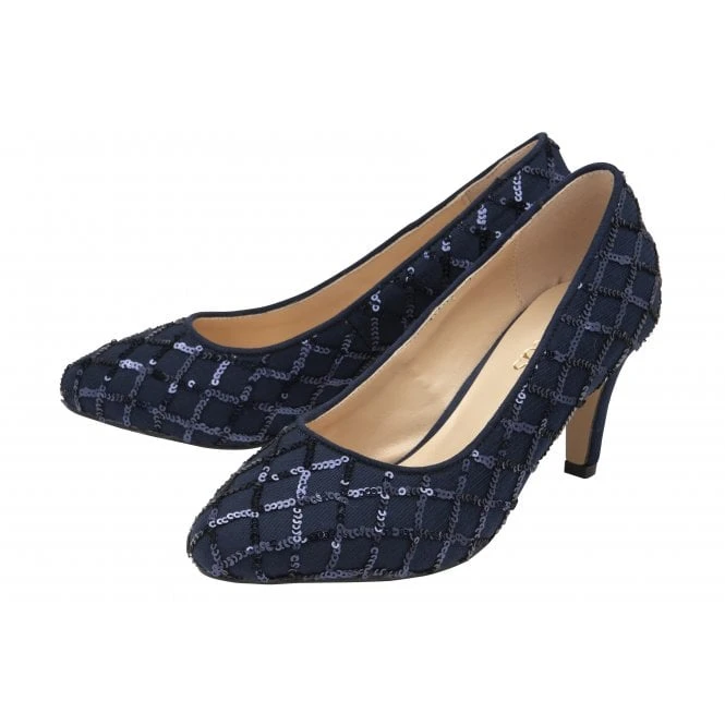 A multitude of small sparkly sequins that have been applied in a regimented diamond pattern grace the textile upper of the Lotus Lucia court shoe. This navy sequin heeled pump features a soft almond pointed toe and a 7cm stiletto heel to make it a chic and feminine Lotus offering. Embrace the glamorous tone of the Lucia court shoe and team it with the Hardin clutch bag to add the ultimate finishing touch to your looks.