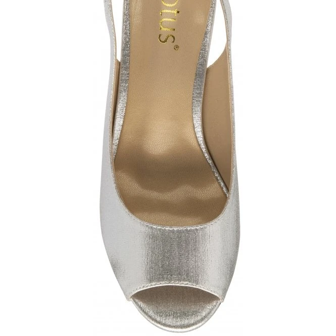 Set to slide seamlessly into your hard-working wardrobe is the Lotus Evelyn slingback shoe. This understated silver peep-toe shoe is crafted from faux leather, it encompasses an adjustable slingback and a contemporary 6.5cm block heel that is enhanced by a decorative metal plate and trim. This Lotus women’s silver shoe coordinates effortlessly with the Claire handbag.